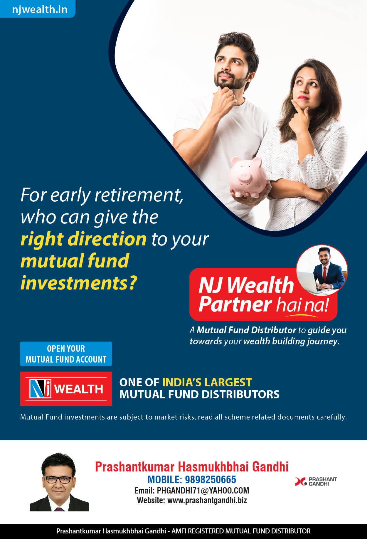 At, Prashant H Gandhi our mission is to provide our clients with the best solutions in wealth building. We are driven to provide clients with simple, unbiased and uncluttered guidance that adds value to their quality of life and results in actionable solutions.