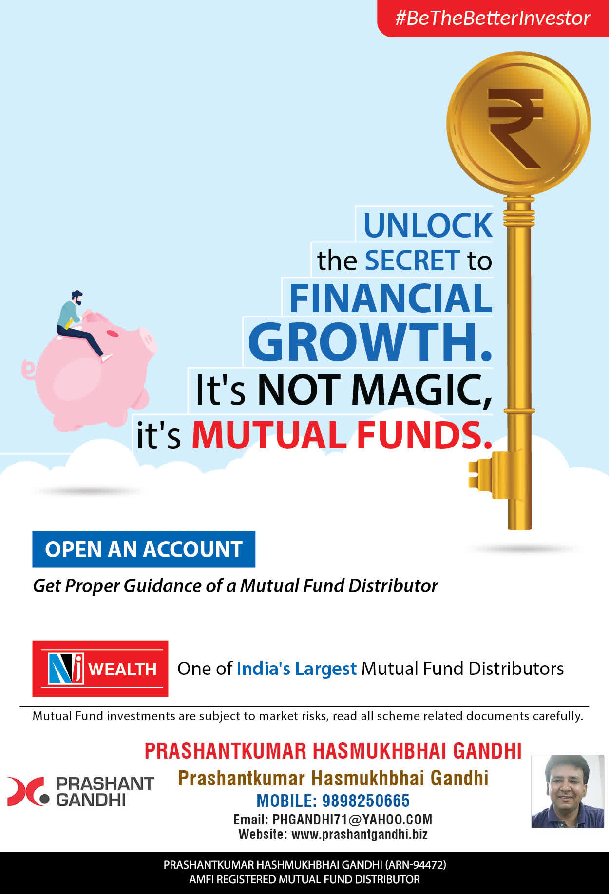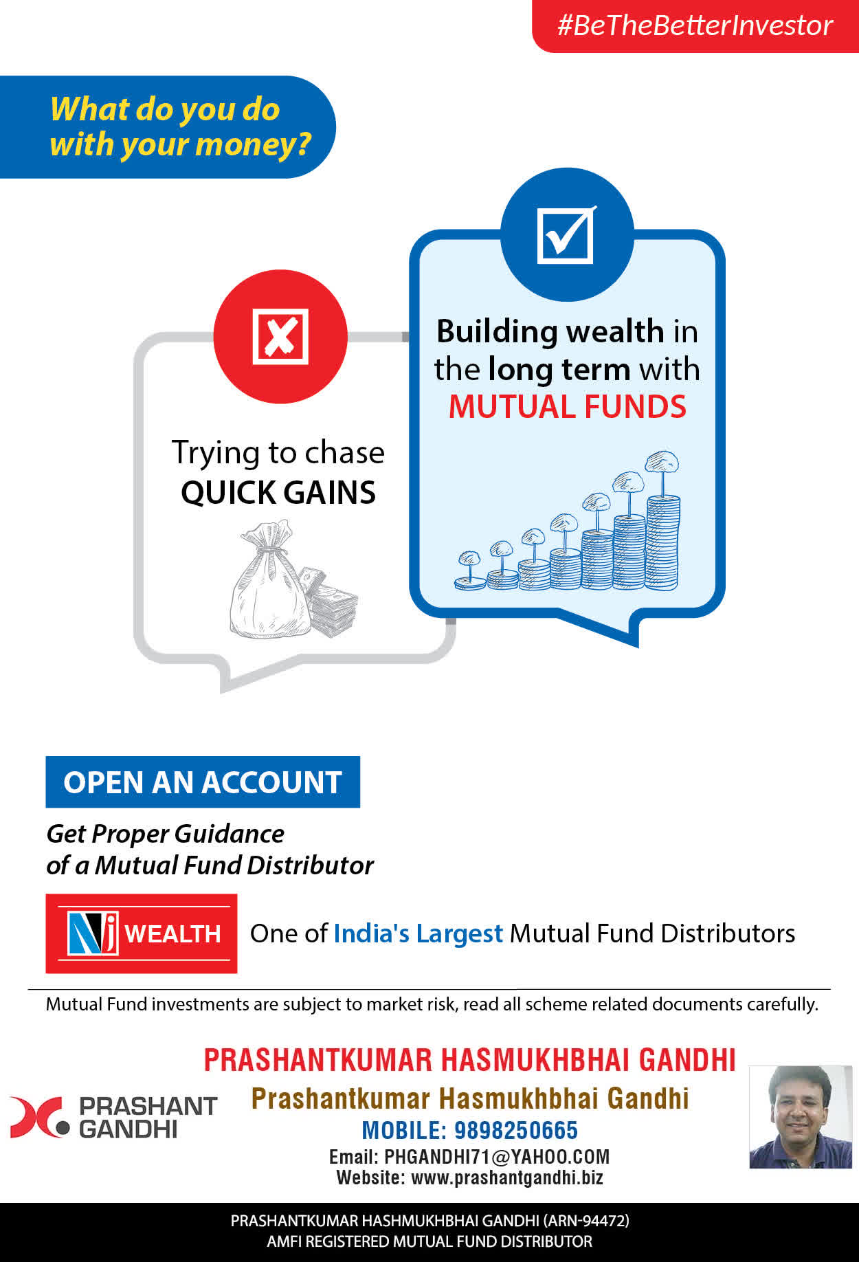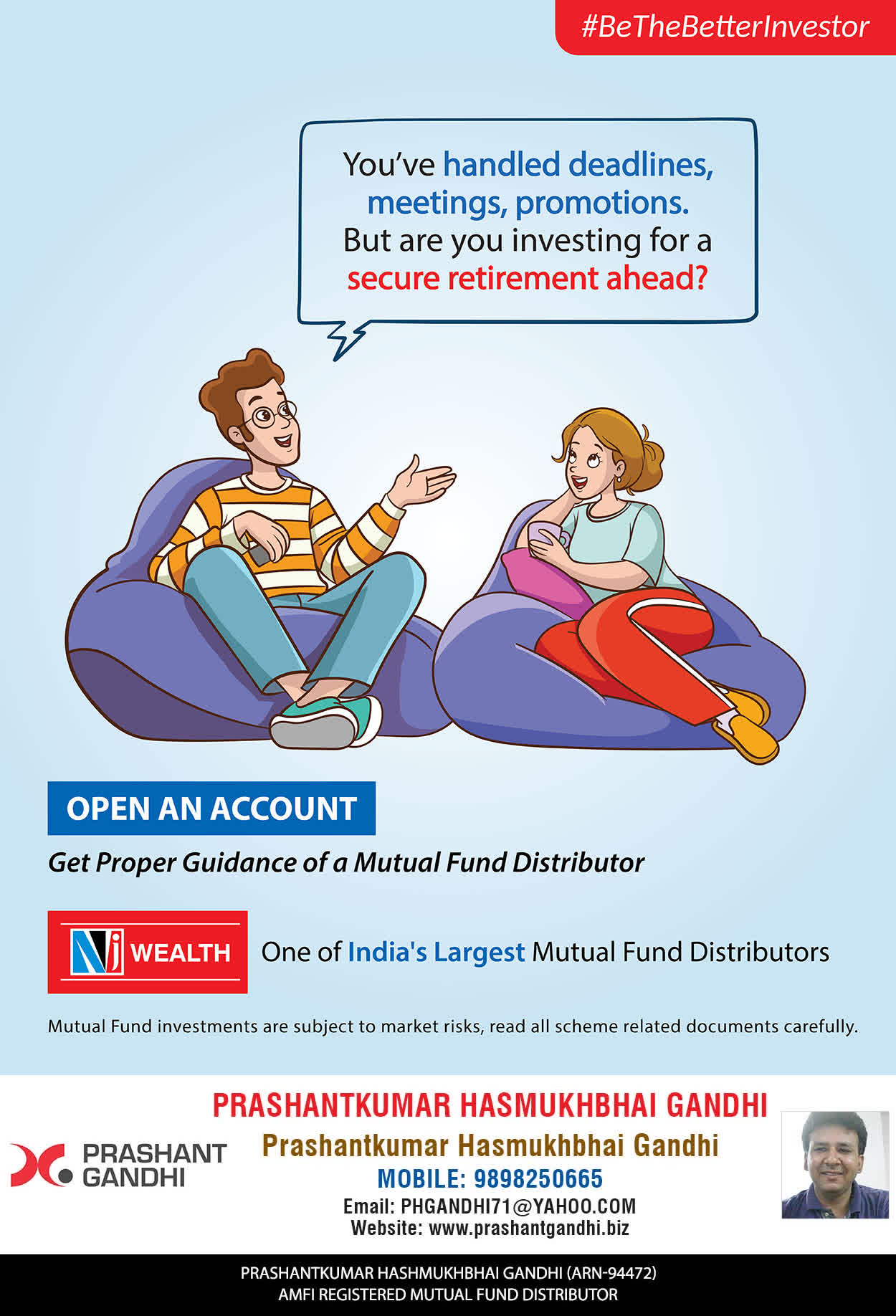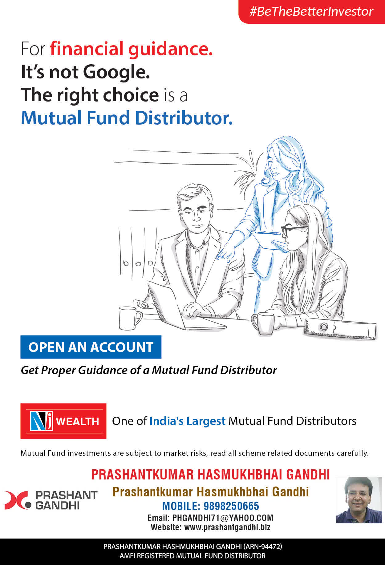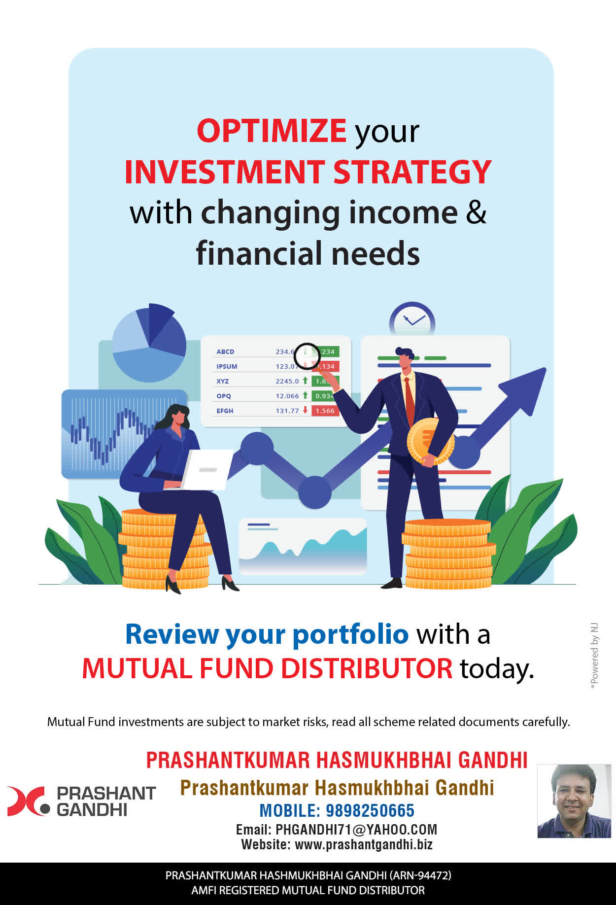 At, Prashant H Gandhi our mission is to provide our clients with the best solutions in wealth building. We are driven to provide clients with simple, unbiased and uncluttered guidance that adds value to their quality of life and results in actionable solutions.