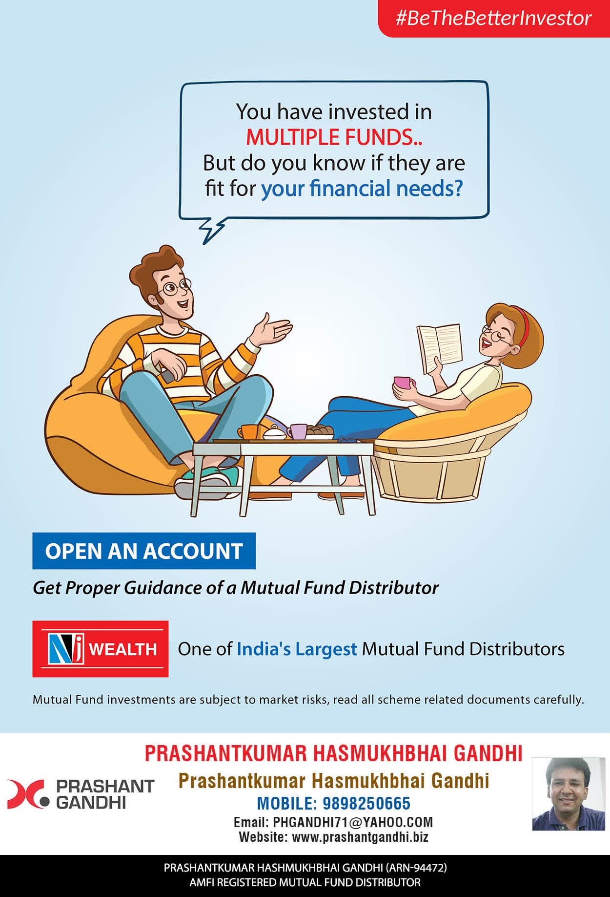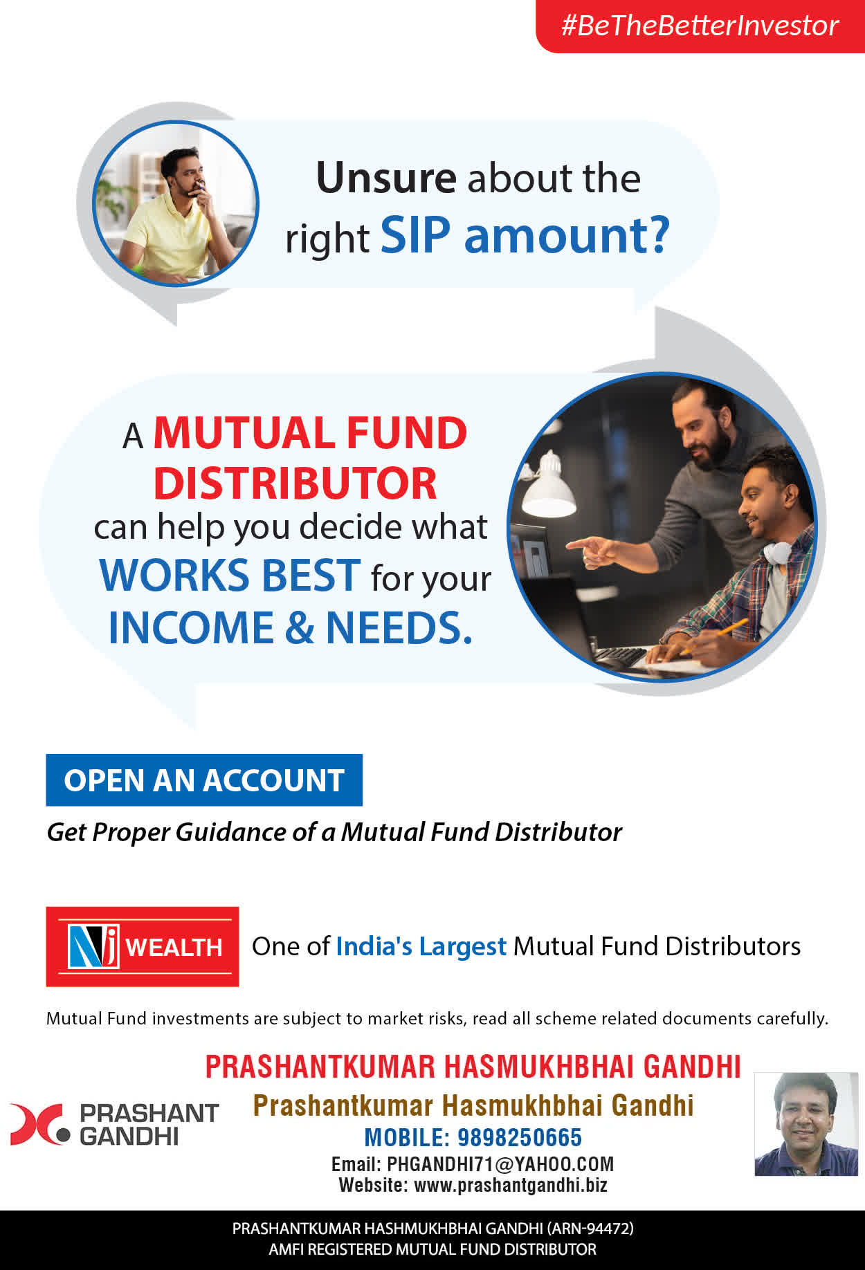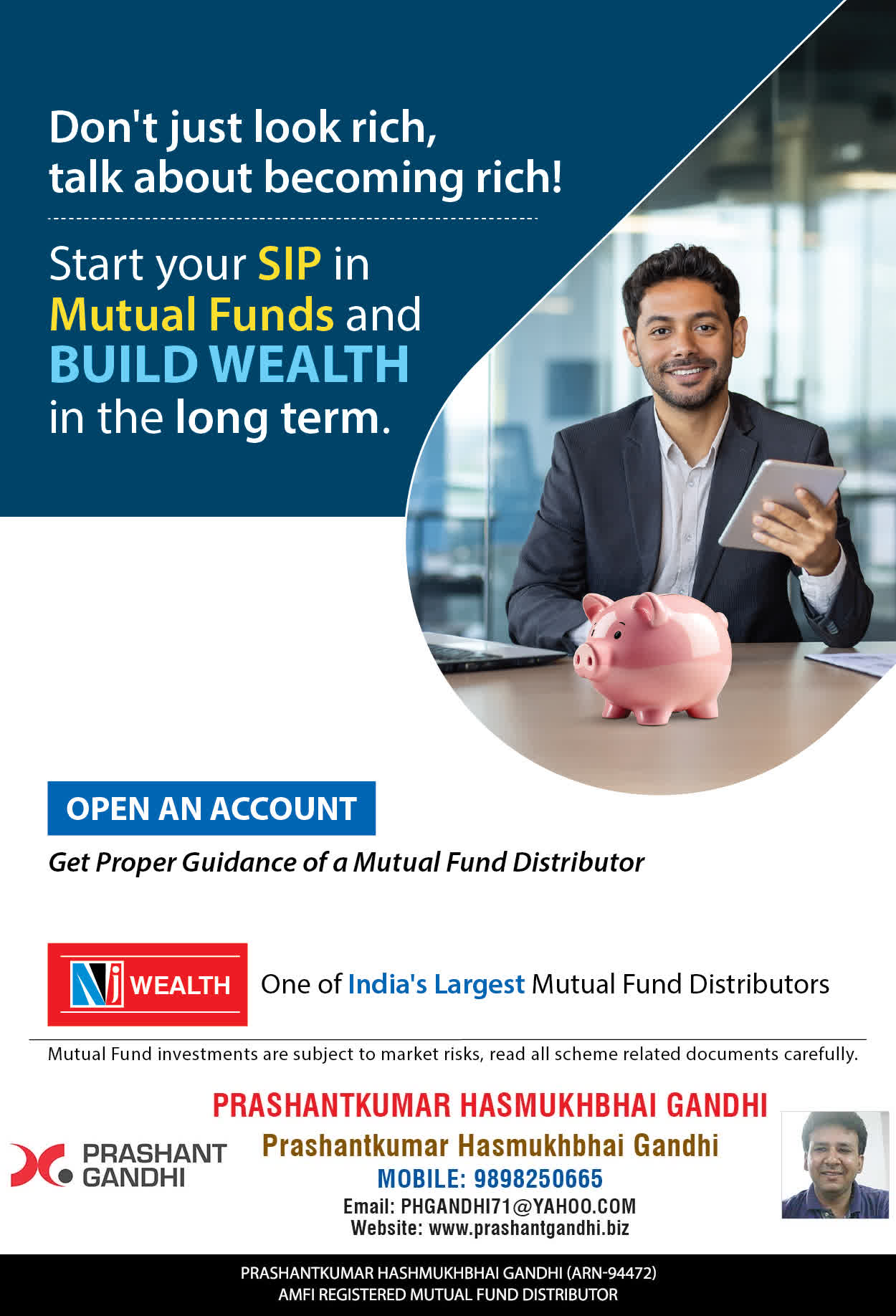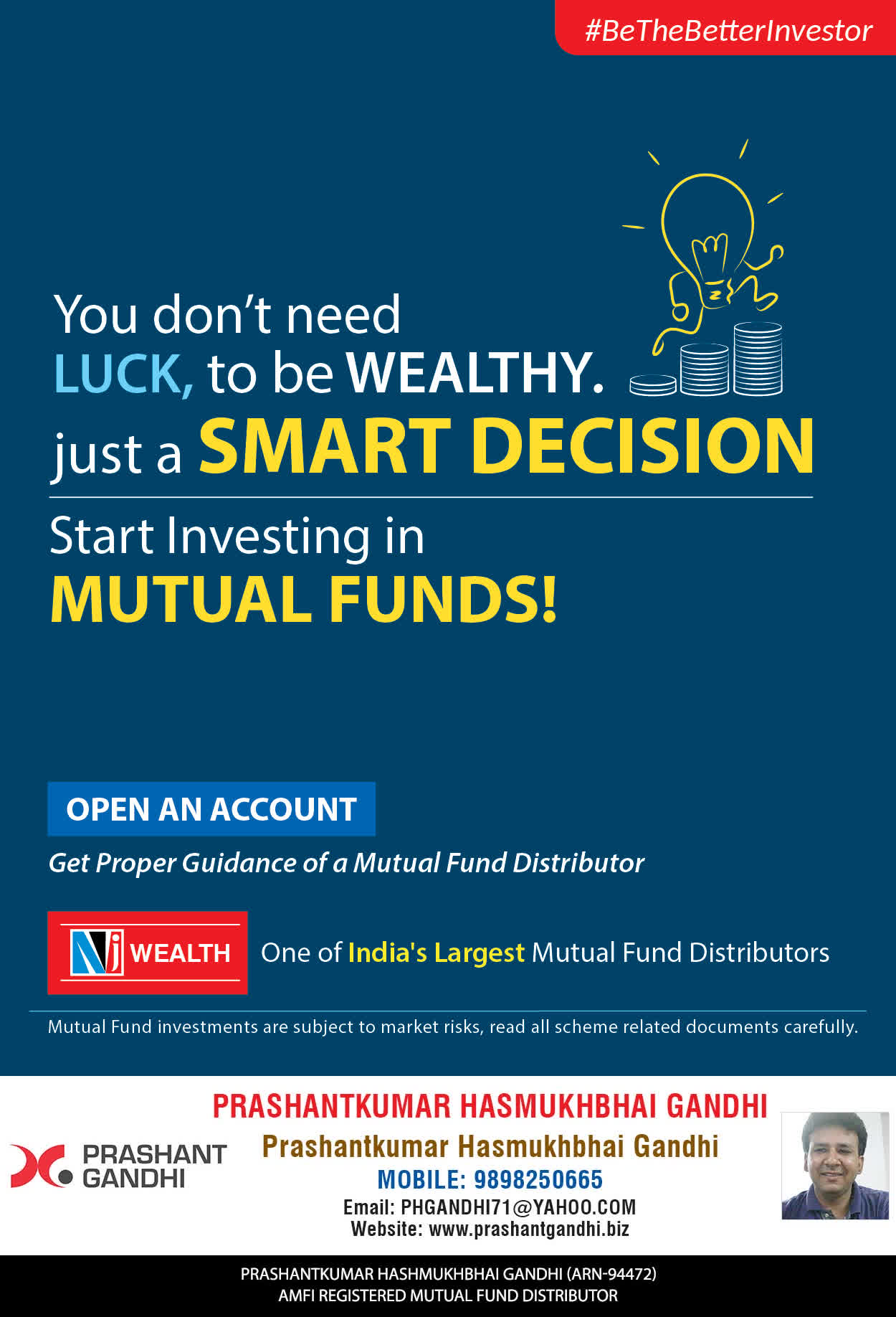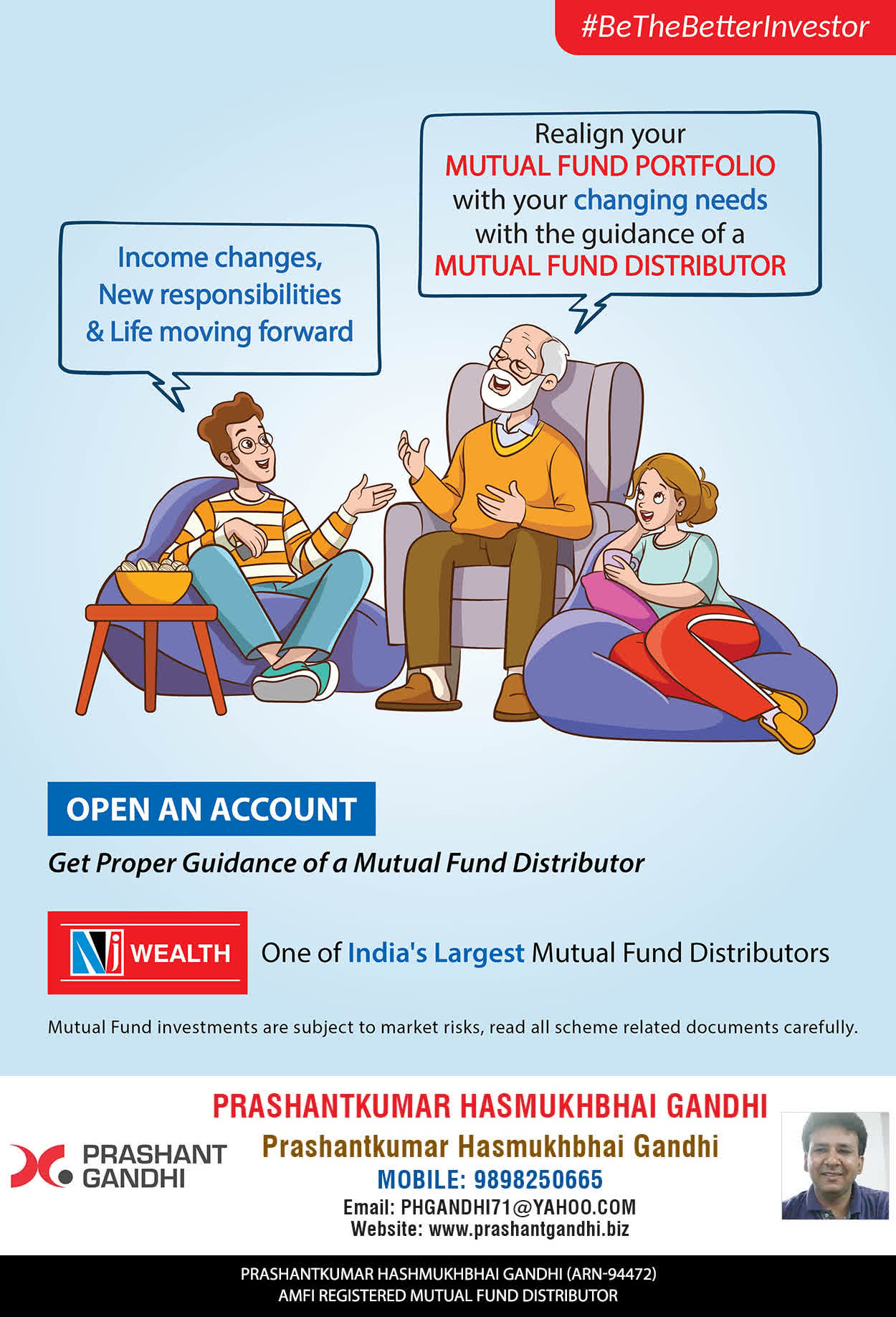 At, Prashant H Gandhi our mission is to provide our clients with the best solutions in wealth building. We are driven to provide clients with simple, unbiased and uncluttered guidance that adds value to their quality of life and results in actionable solutions.