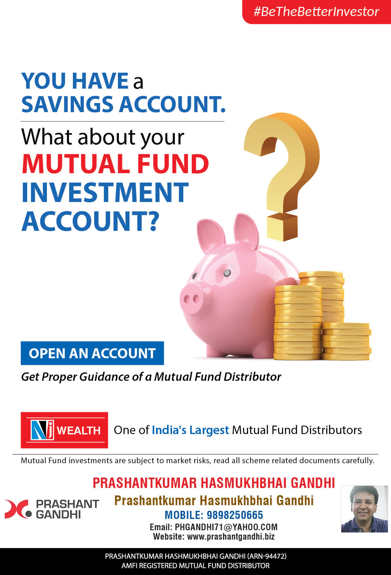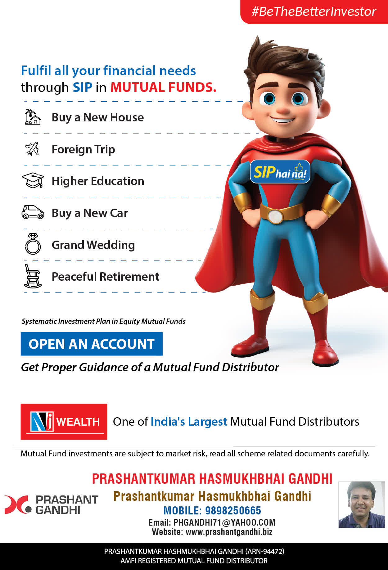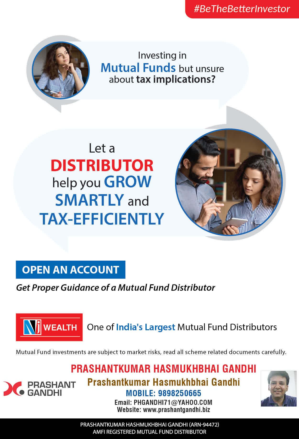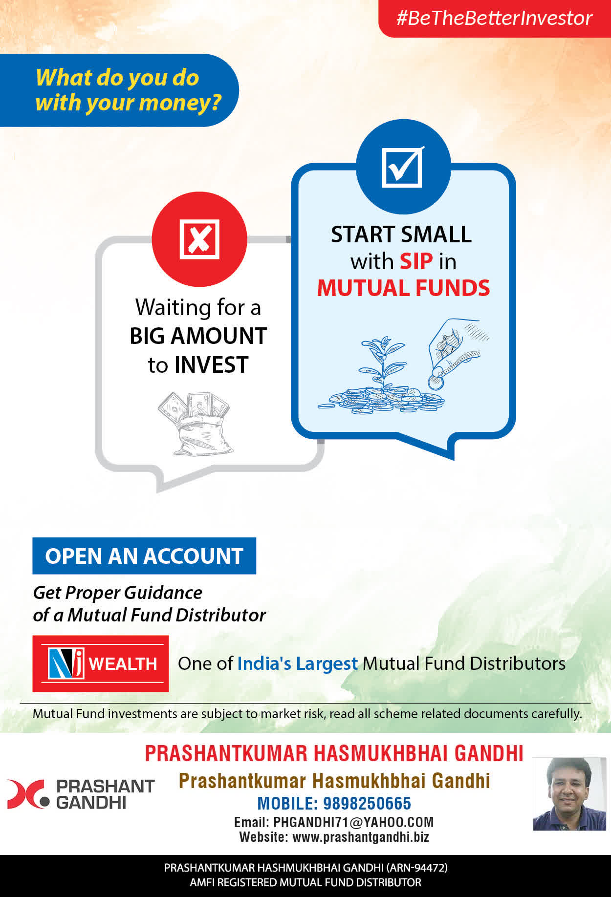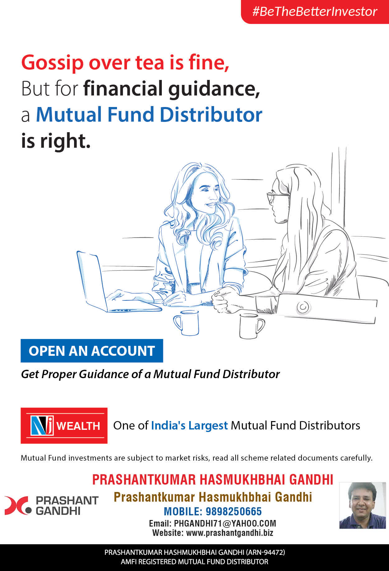 At, Prashant H Gandhi our mission is to provide our clients with the best solutions in wealth building. We are driven to provide clients with simple, unbiased and uncluttered guidance that adds value to their quality of life and results in actionable solutions.